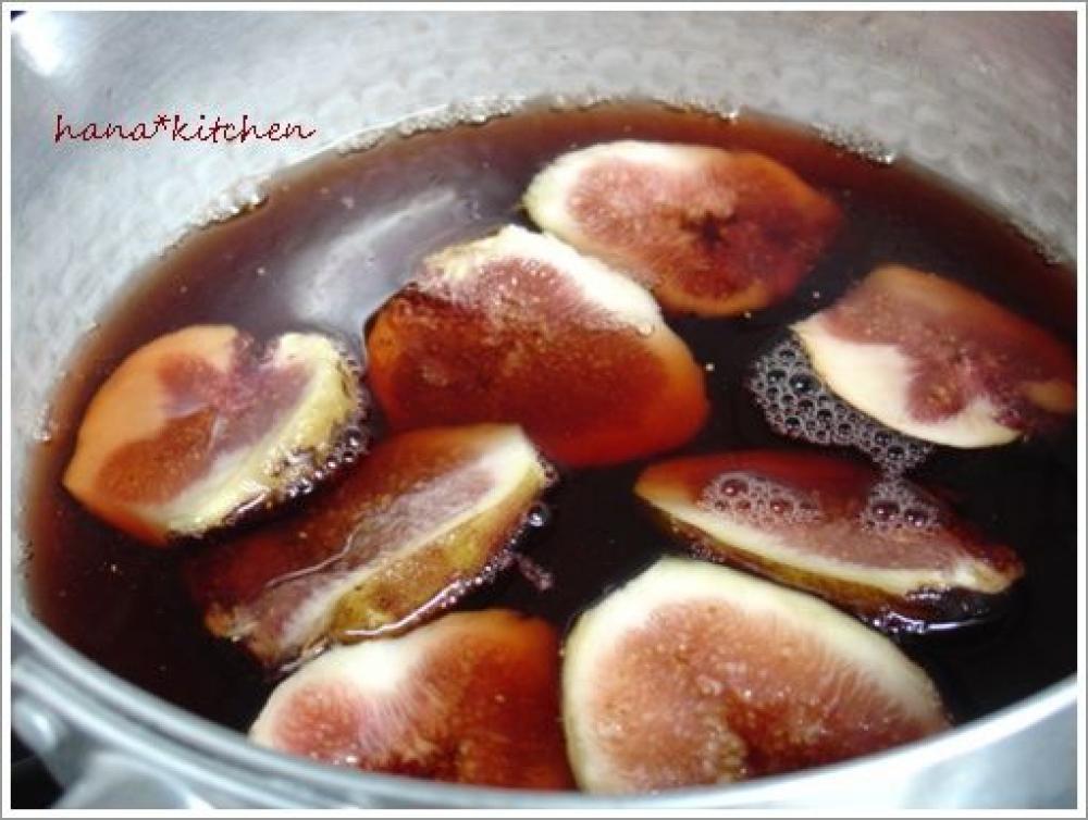 ![]() 赤ワイン・水・砂糖の半分の量を鍋に入れ、1のイチジクを加えて煮る(10分程度)