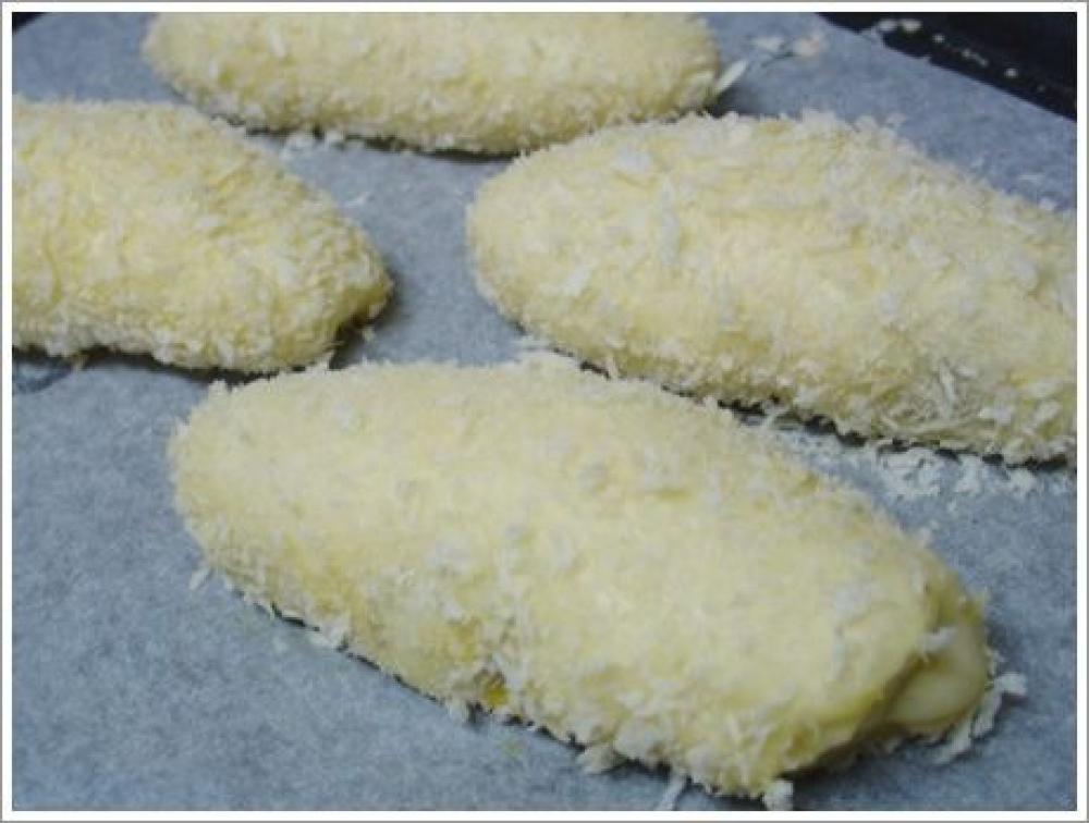 ![]() 発酵後、焼きカレーは、溶き卵を塗ったあと十字に挟みで切り込みを入れ、上からチーズとパセリを乗せ180度のオーブンで8分焼