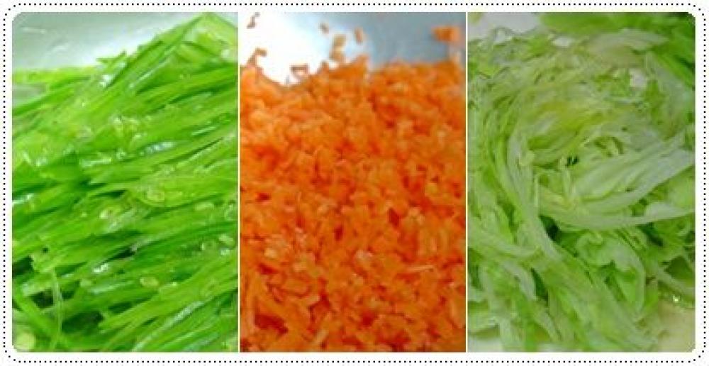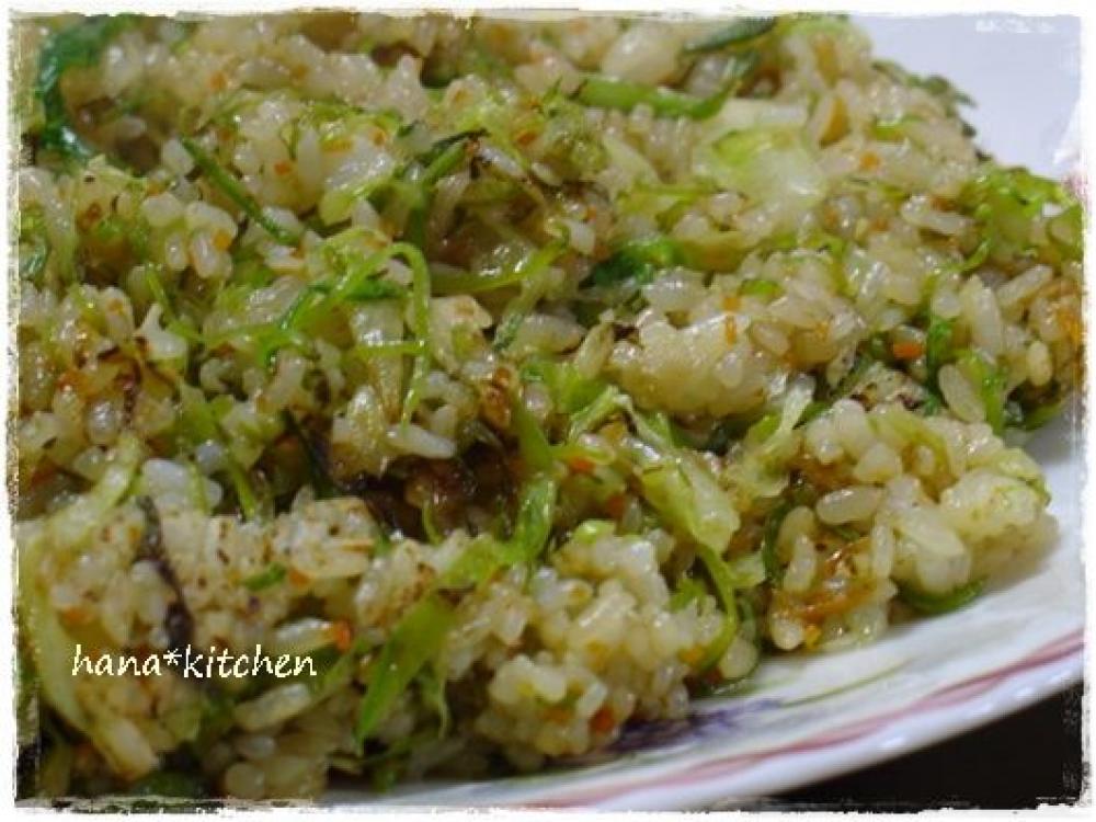 1に野菜を加え、さっと炒めたあと、ご飯を加えてパラパラになるまで炒める。
