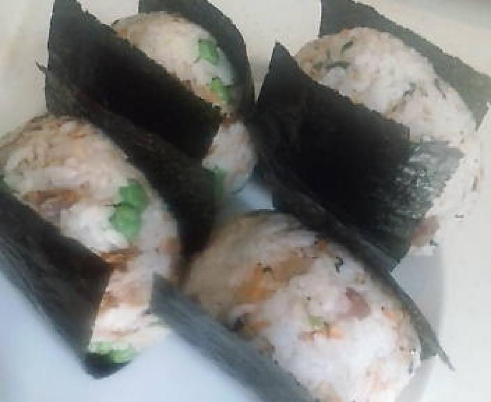 ・チャーシューとグリンピース入りおにぎり ・カリカリ梅とじゃこのおにぎり |