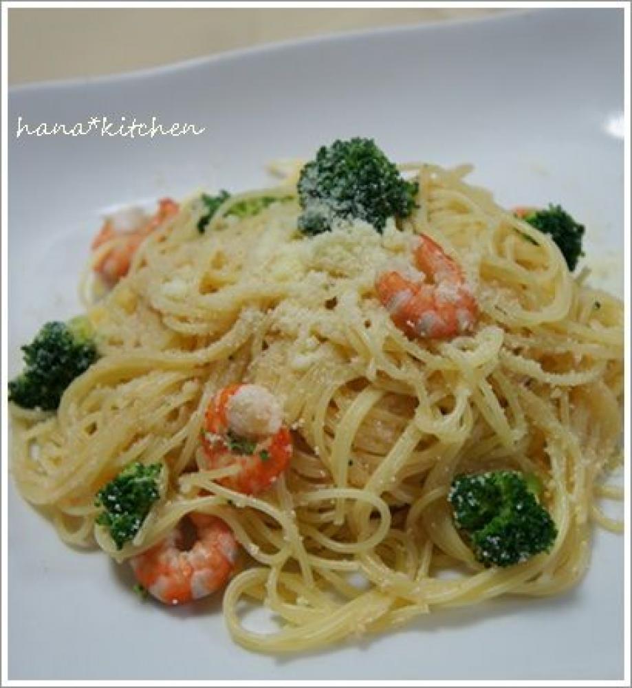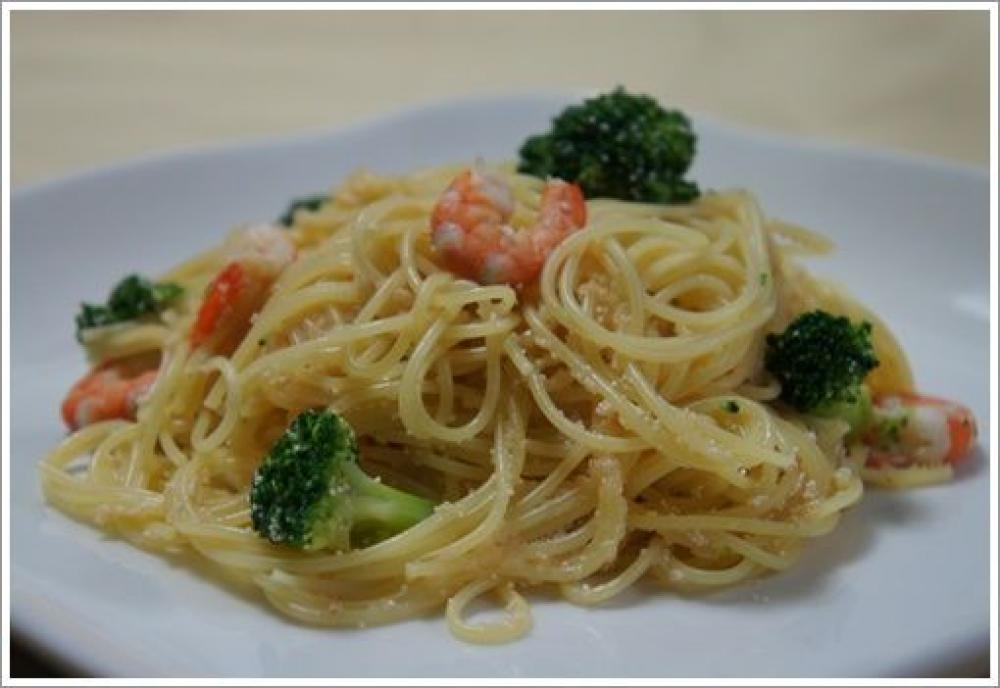 準備・パスタを茹でるお湯を沸かす・ 明太子はほぐしておく・ ブロッコリーは小房に分ける・ 海老は殻を剥き、背ワタを取って