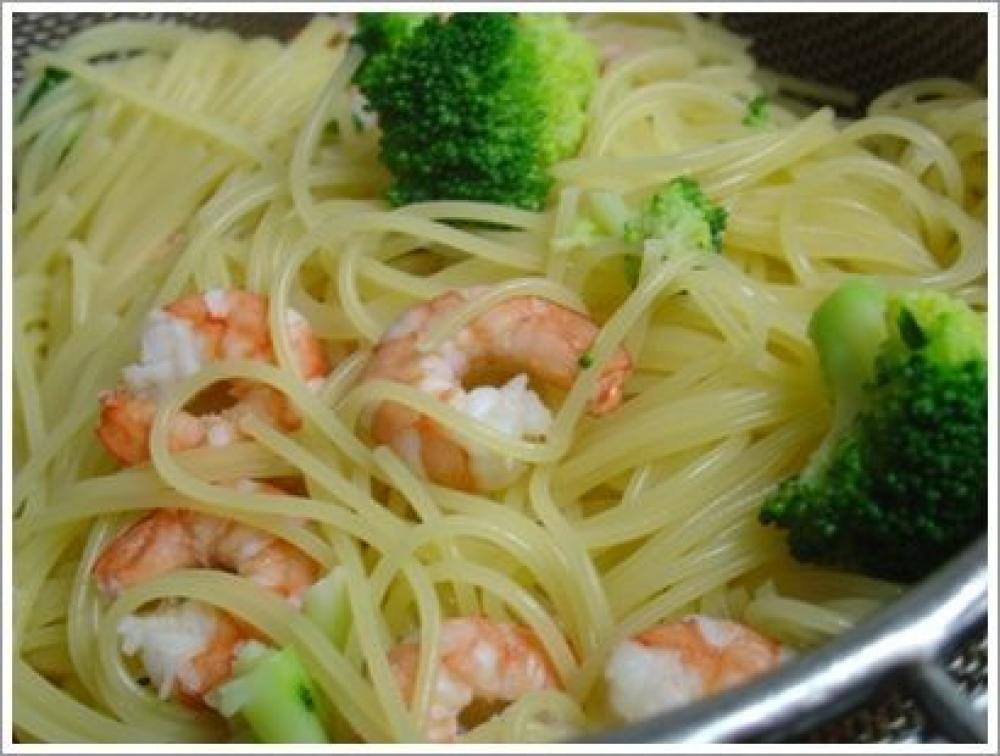 ![]() 茹であがり1分前に2に海老を加え、茹であがったらザルにあける。(お鍋のお湯は捨てる)
