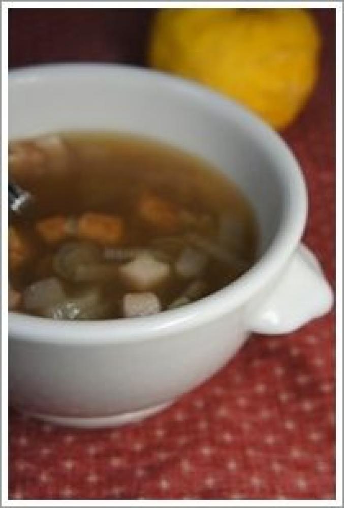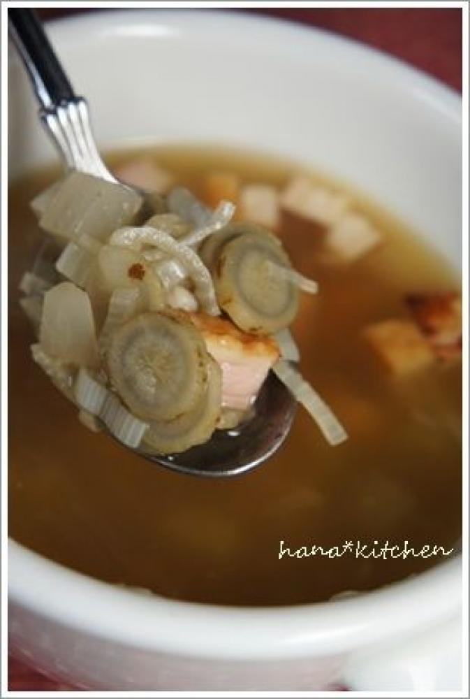 拍子切りにした大根を加え、コンソメキューブと水を加える。