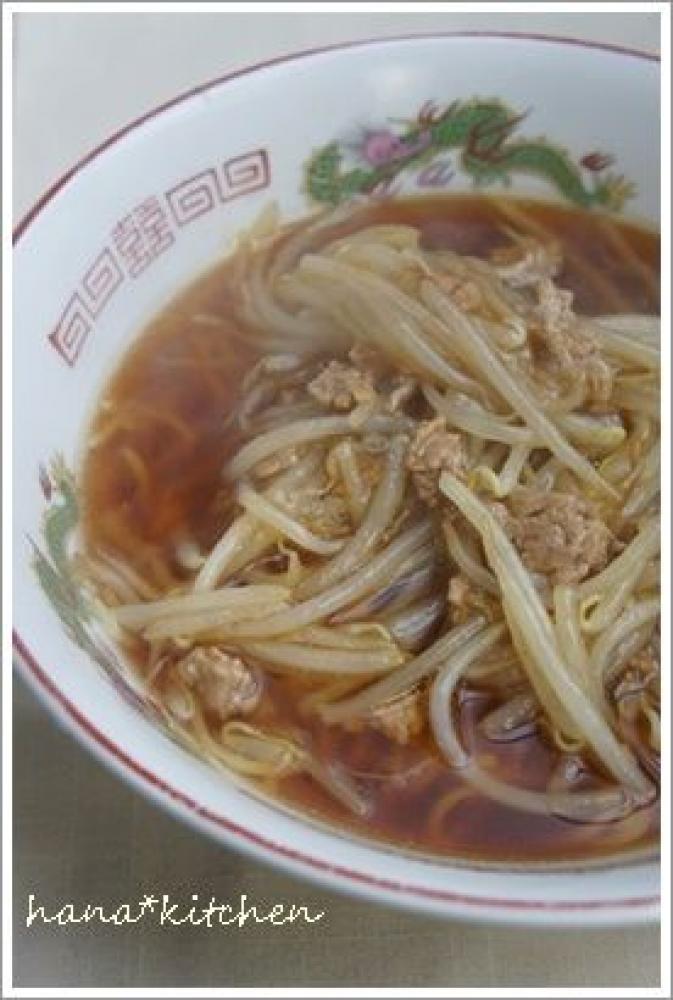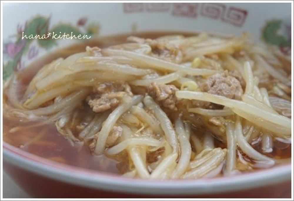 ![]() ラーメンの麺を茹で、スープとともに器に盛り付け、4のもやしあんをかける。
