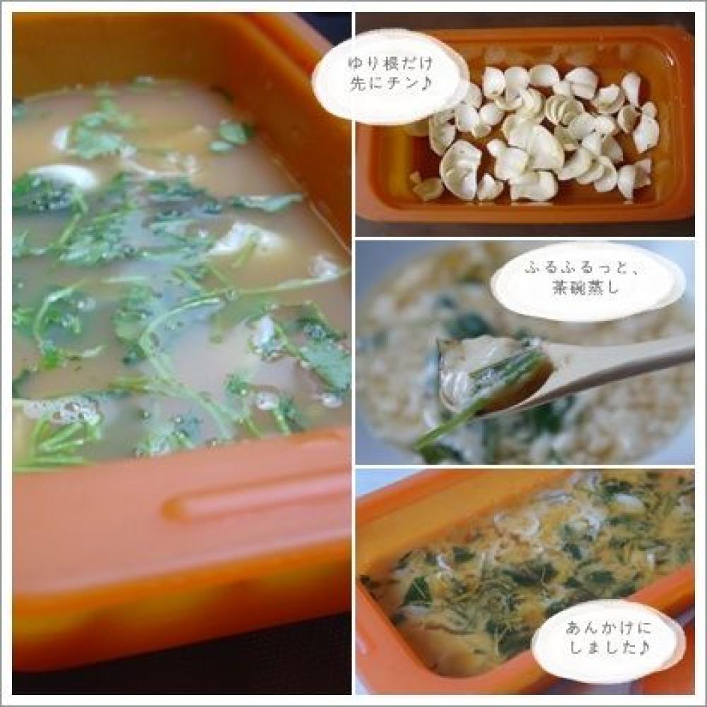 ゆり根は1枚ずつに綺麗にはがして綺麗に洗う。濡れた状態でvivに並べ、蓋をしてレンジで2分加熱する。