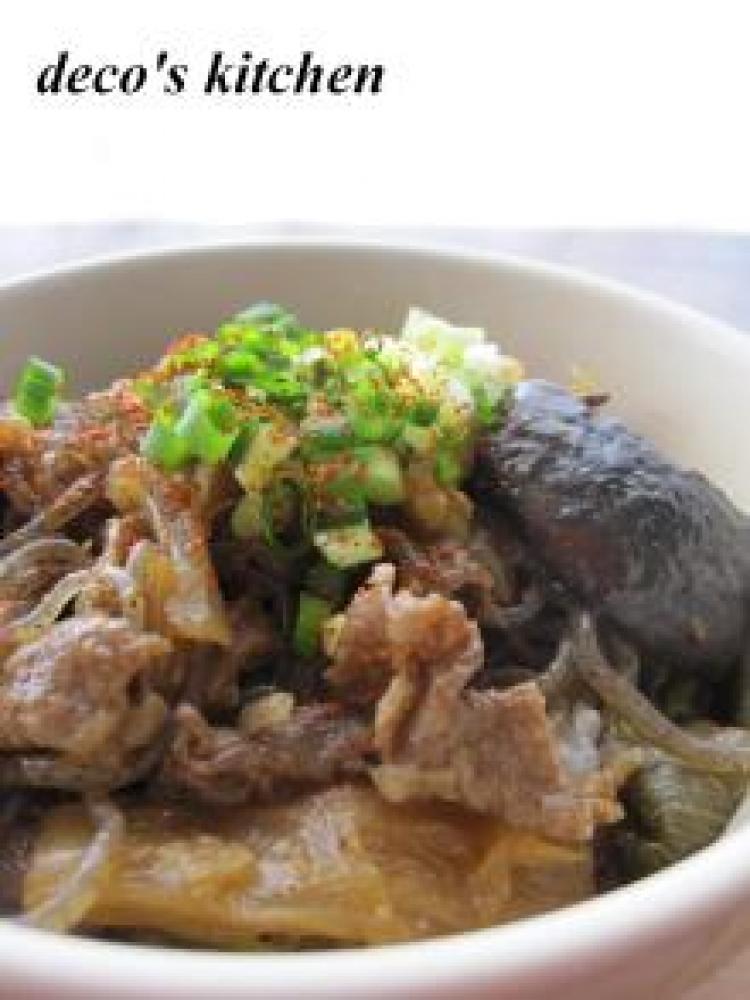 お野菜とお肉を食べやすい大きさに切っておく。お鍋にごま油を入れてしっかり熱し、牛肉を入れて砂糖をまぶして炒める。