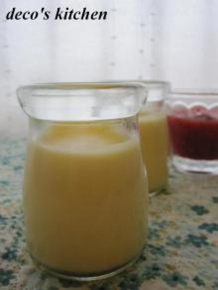 ②を2~3回に分けて加え混ぜ、漉してから容器に入れて、冷蔵庫で冷やし固める。(だいたい、2~3時間くらい)