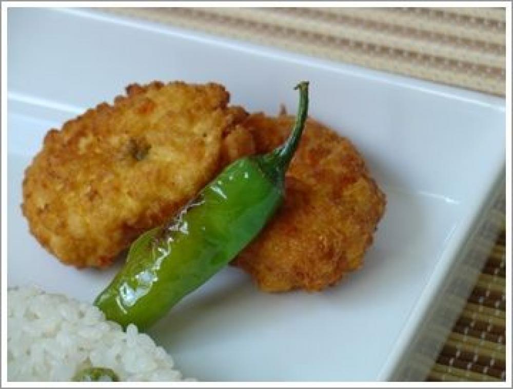 ![]() 3を八等分し、それぞれを丸めて180℃の油で揚げる。