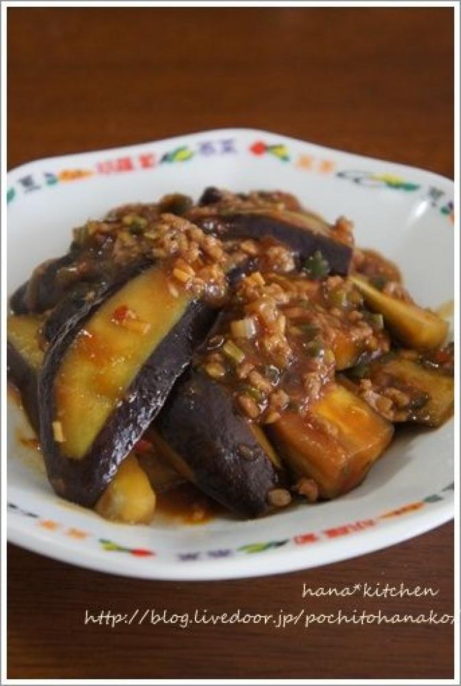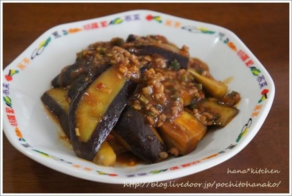 水250cc程度(茄子半分くらいがつかる程度)を加え、調味料をすべて加えてしばらく煮た後、味を整える。