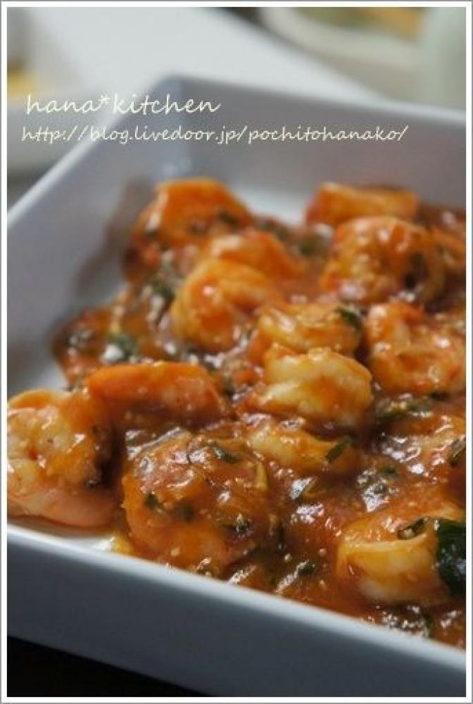 ![]() 3に200cc程度のお水と調味料を加え、煮立ったら2のエビを戻し、火が通ったら水溶き片栗粉でとろみをつければできあがり。