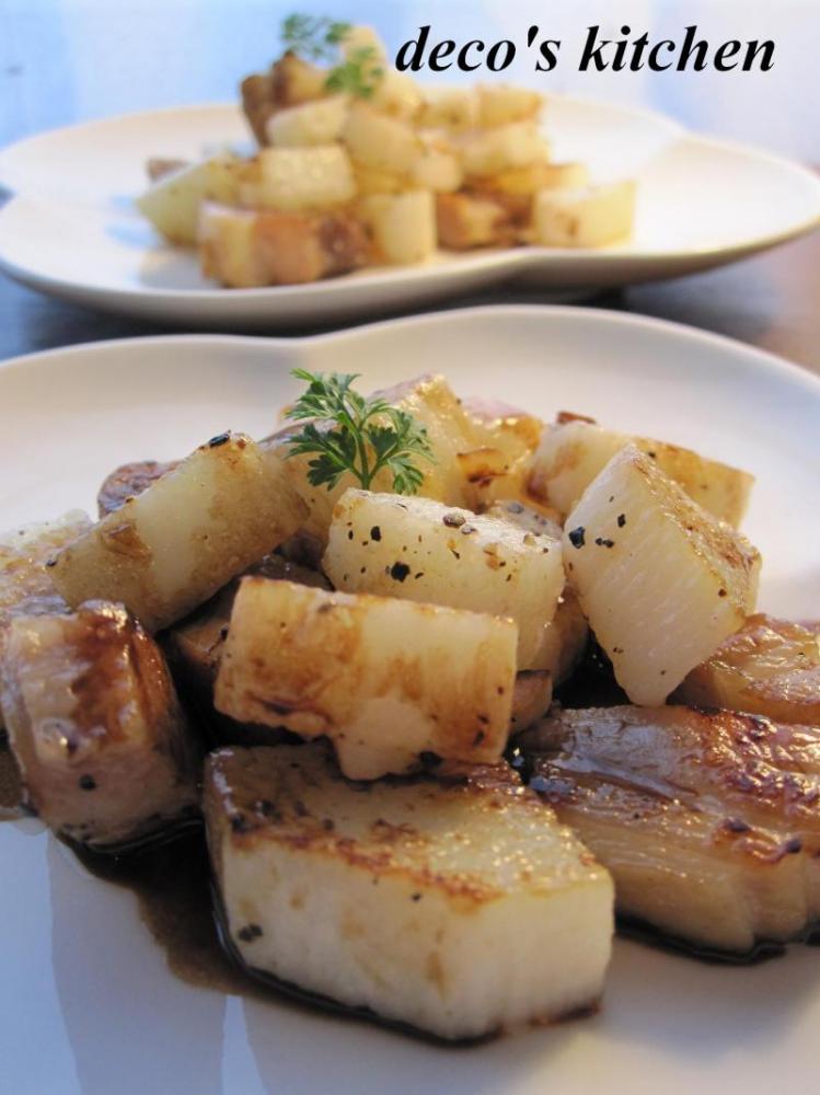 長いもは皮をむき、1.5cm角くらいにカット。ベーコンも、1~1.5cm角にカット。