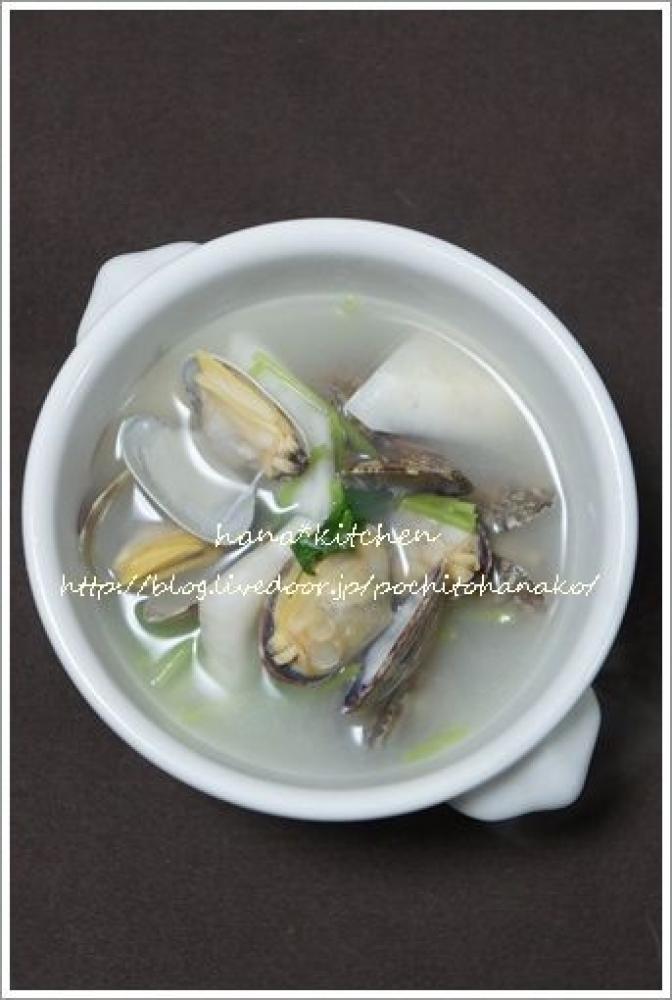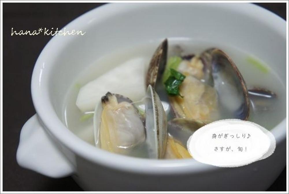 ![]() 塩で味を整えたあと、あさりを戻し入れ、三つ葉を入れてサッと煮れば出来上がり。