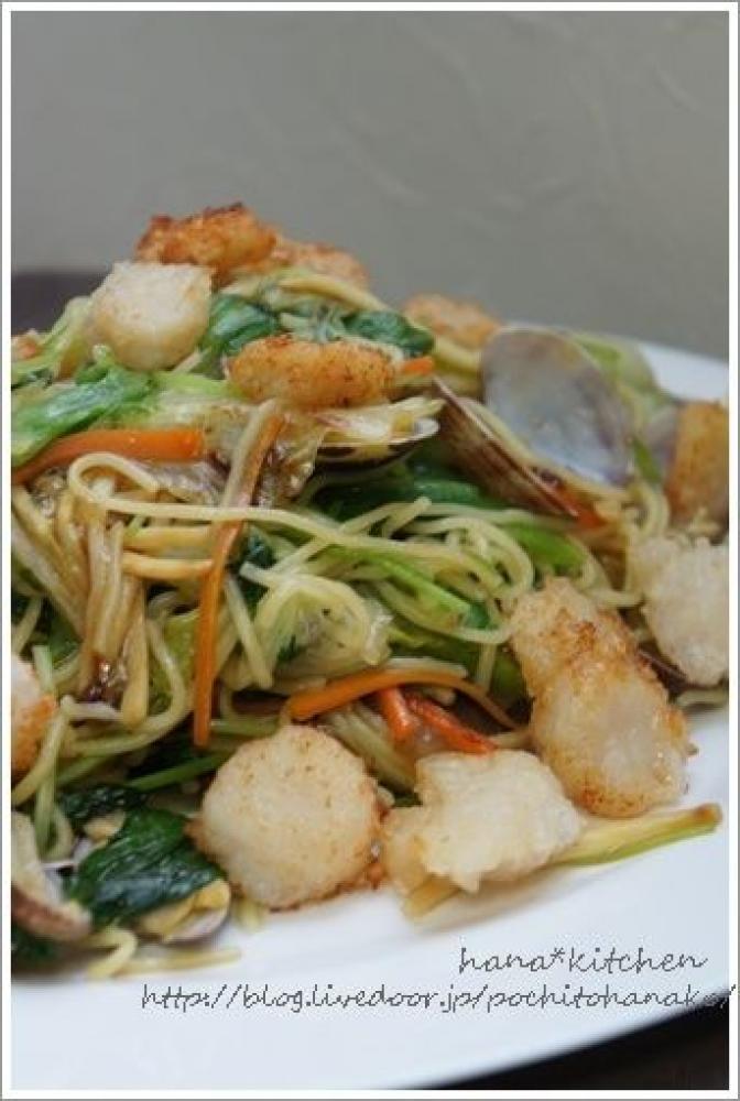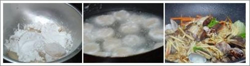 ![]() ホタテは、厚みがある時は2枚にスライスし、片栗粉をつけて油で揚げる。