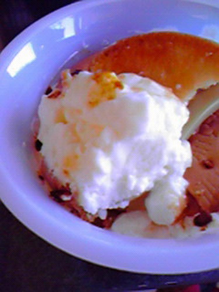 水切りヨーグルトを乗せ、ラカントS液状をかけます。