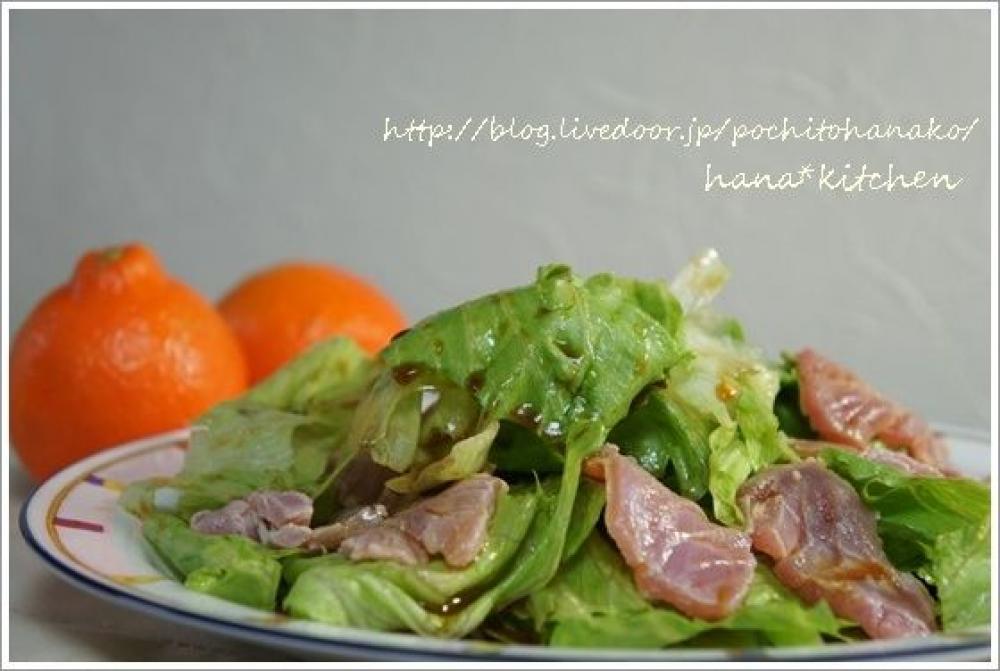 レタスなどを敷いた上に、まぐろを飾り付け、ドレッシングをかければできあがり。