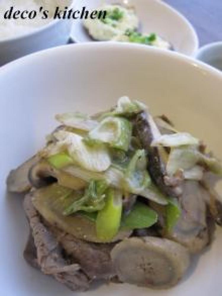 ごぼうと白ねぎは斜め薄切りに(ごぼうは酢水につけて灰汁ぬき)、椎茸もスライスしておく。