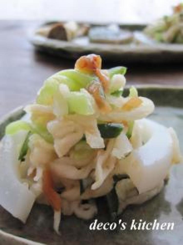 イカは、さっと塩茹でし、細長く切る。