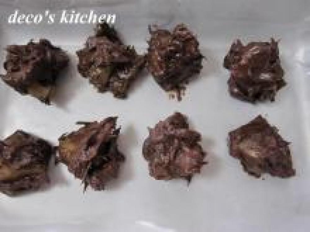 ![]() チョコレートを、湯せんでとかす。パインを8つに切り分け、とかしたチョコと和え8つに分けオーブンペーパーの上にのせておく。