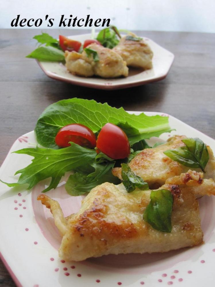 お肉に火が通り、水分がだいたい飛んだところで、粉チーズとちぎったバジルを加え、全体に絡めるようにさっと炒めて完成。