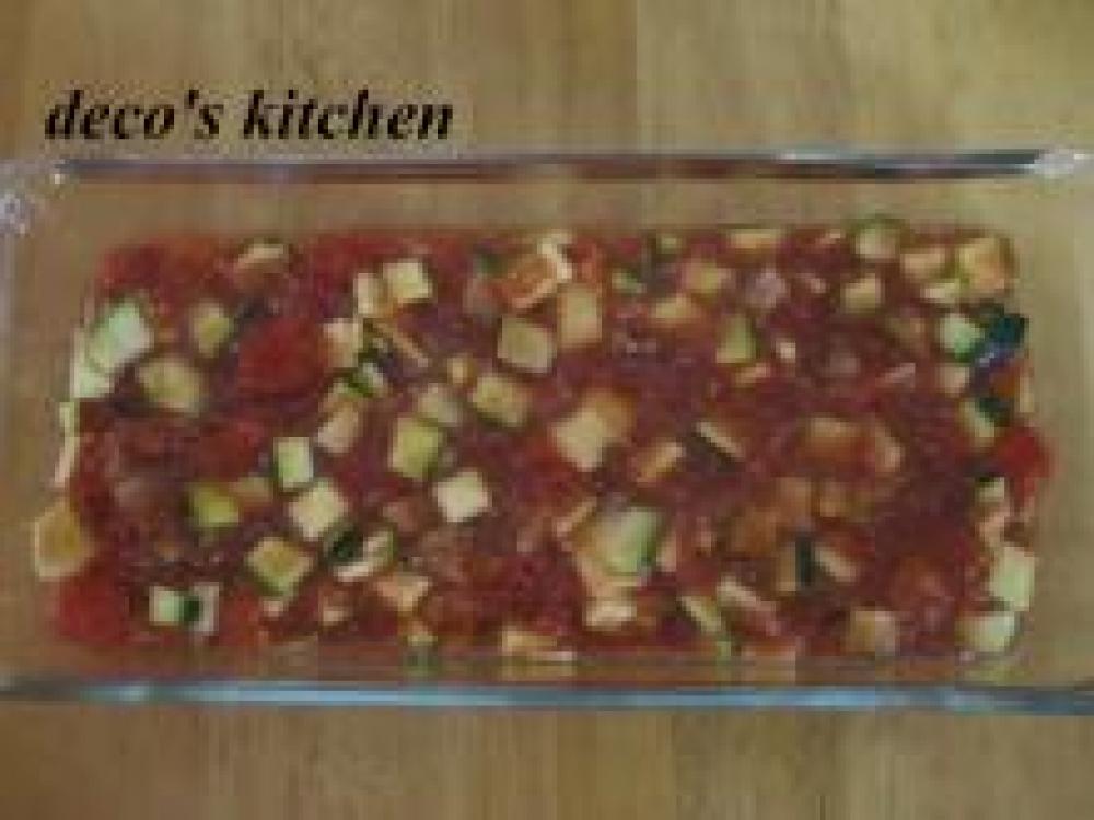 ![]() ②の容器の隙間にソースをいれ、さらにロールを隠すようにソースを上に乗せる。180度に余熱したオーブンで30~40分焼く。