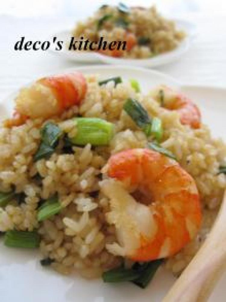 ご飯がぱらっと炒められたら、取り出しておいた海老+ねぎを加えてさっと炒め☆を混ぜ合わせたものを加えてざっと混ぜて炒める。