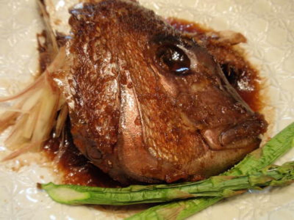 熱湯をかけておいた鯛の頭と生姜のすりおろしを加えて落とし蓋をして少し煮ます。