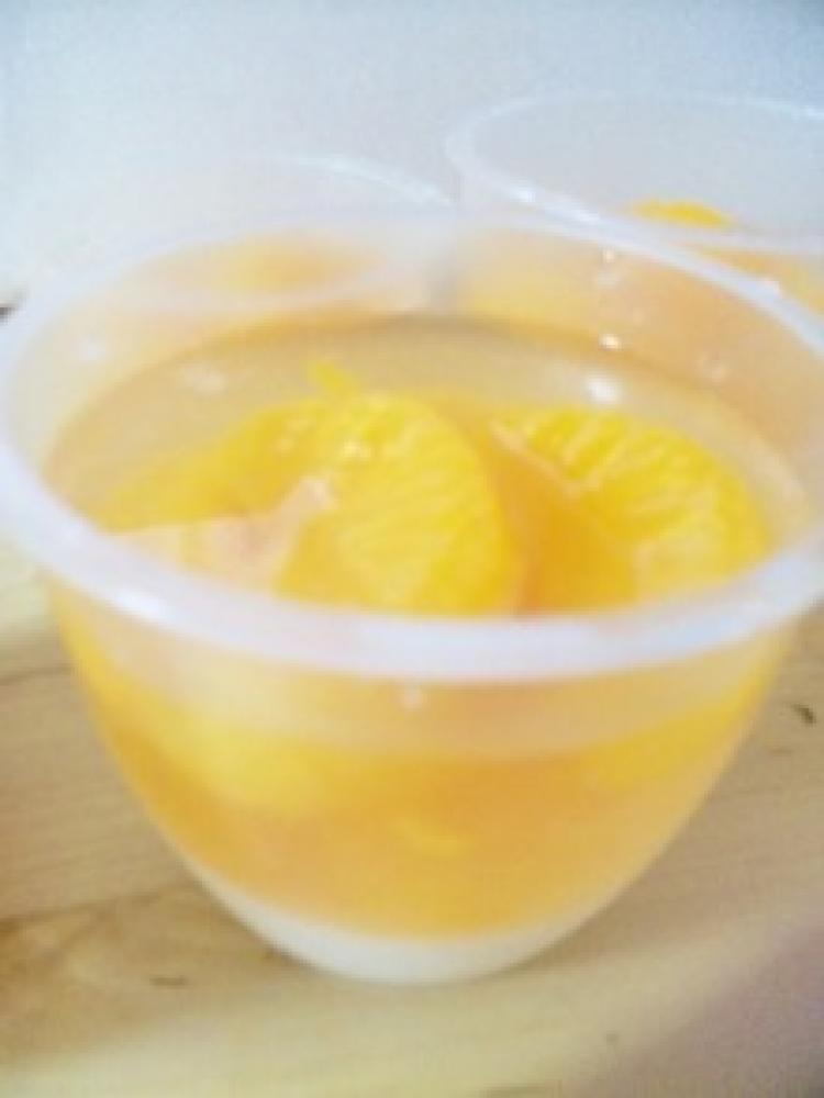 ![]() 容器にミルクゼリーを入れ、固まったのを確認して、ミカンゼリーを入れます。