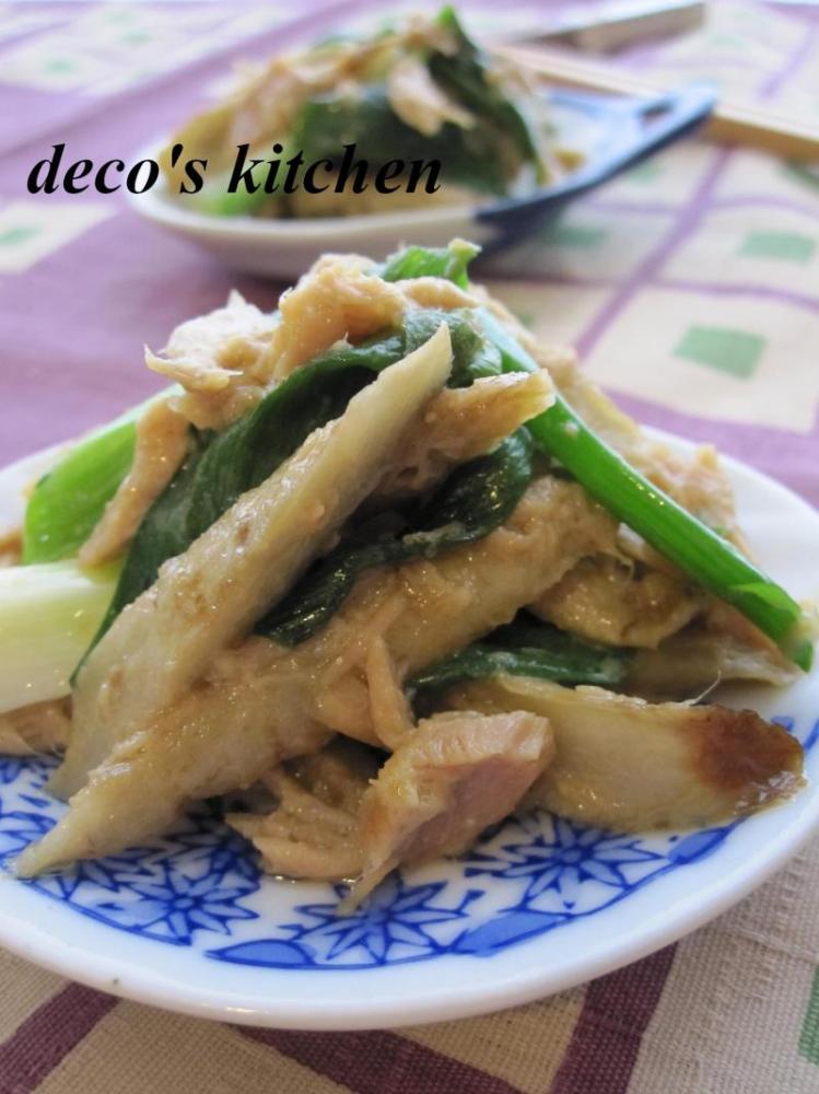 牛蒡に焼き色がついてしっかり焼けたら、ツナを加えて炒め、ねぎも加えてさっと炒める。