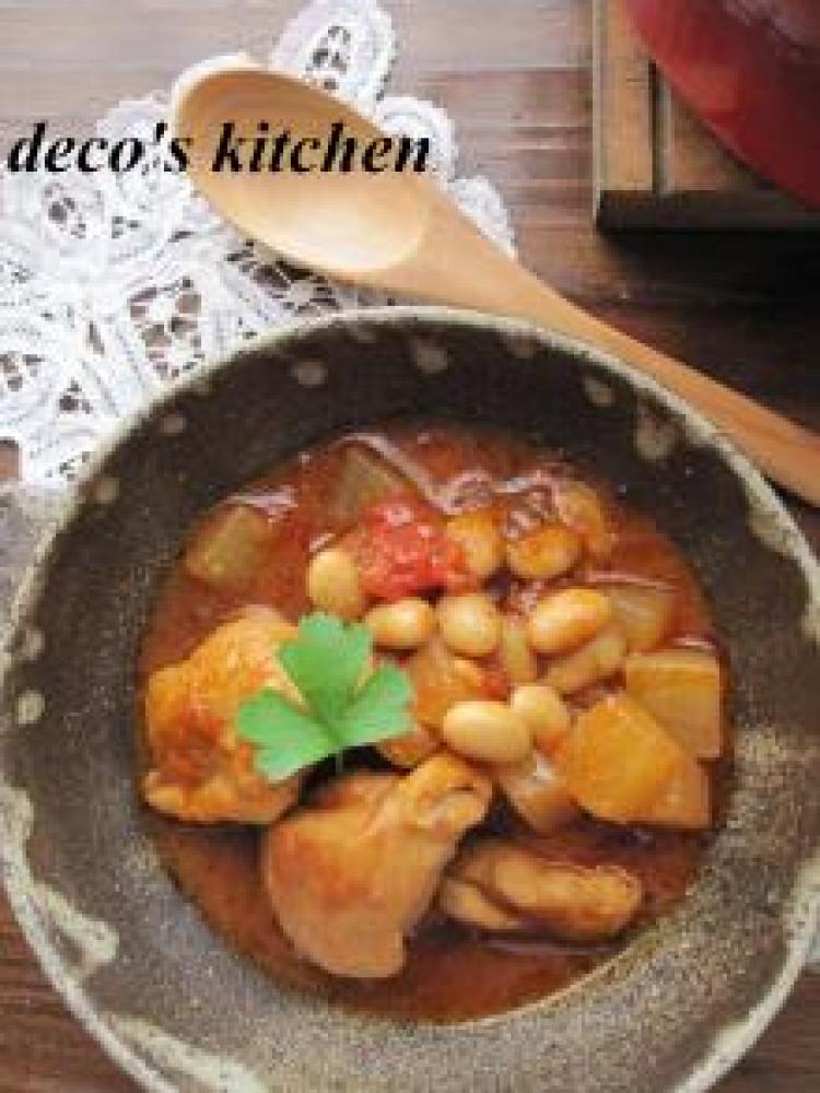 ②に*をすべて加え、煮立ったらしっかりアクを取り、大豆も加え、ぴっちりとフタをして、弱火でコトコト、15~20分煮込む。