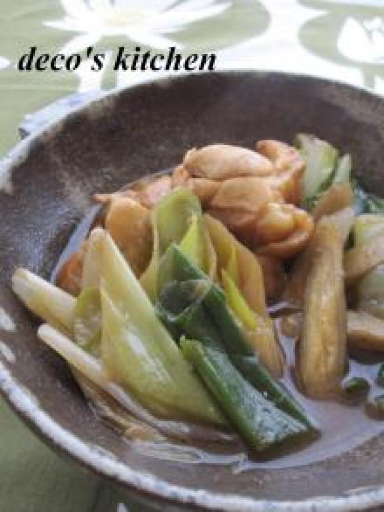 長ネギは、食べやすく斜めにカット、ごぼうは包丁の背で皮をこそげ取り、斜めにカットし、酢水でアクを抜き、洗って水気を切る。