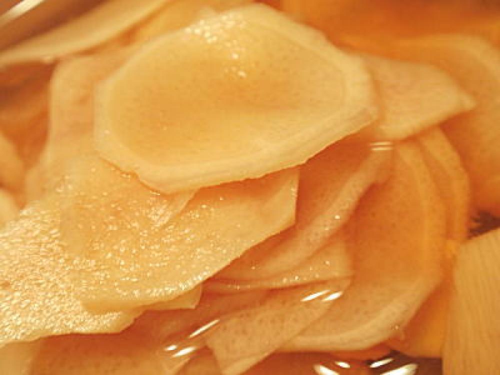 ![]() 赤の食紅を少量入れて漬けると「紅生姜」にもなります。
