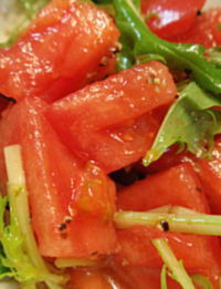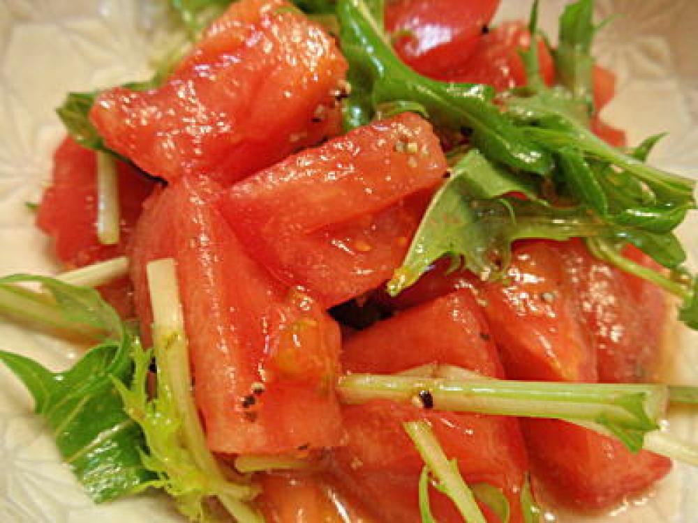 ![]() 全ての材料をよく合わせて、角切りトマトにかけるだけです。