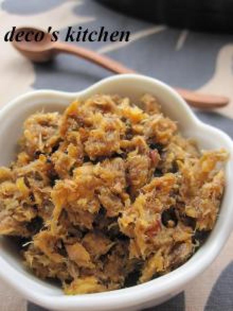 ある程度水分が飛んだら、☆の材料(白ごま以外)を加え、さらに水分を飛ばすように炒める。