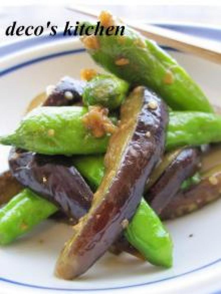 フライパンにサラダ油を熱し、茄子を炒めていく。茄子がに油がまわったら、しし唐も炒める。