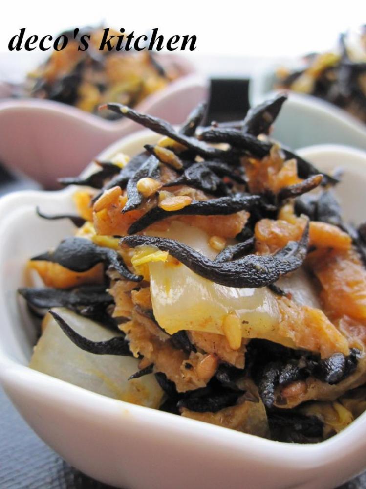再度ごま油を熱し、白菜+塩をふって炒める。しっかりと水分を飛ばしながら、炒める。続いてひじきを炒め、薄揚げを戻しいれる。