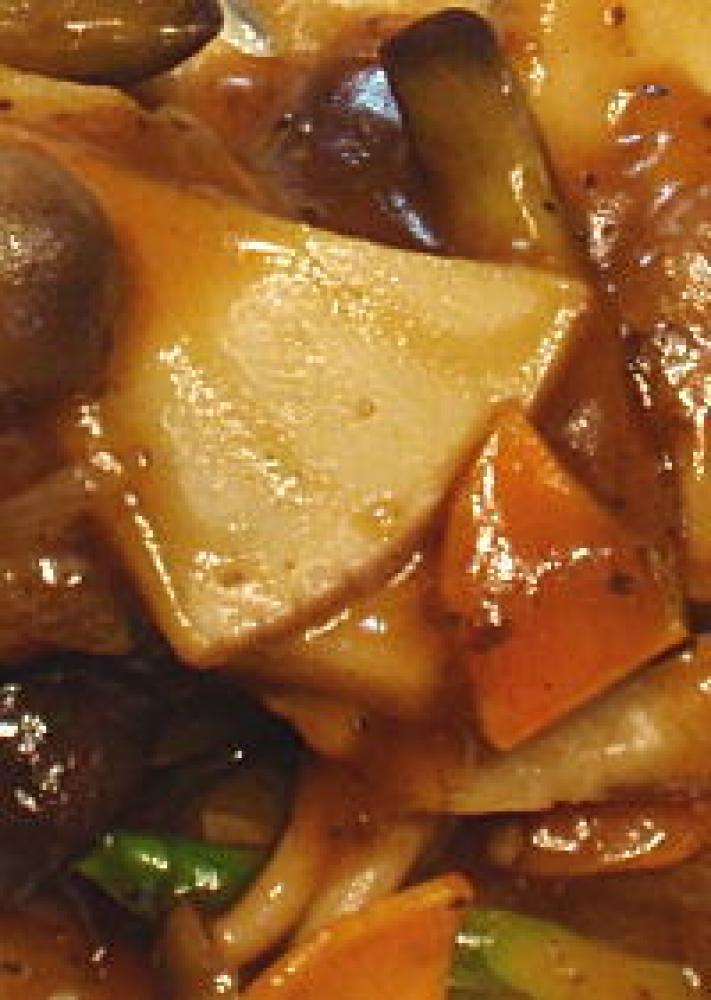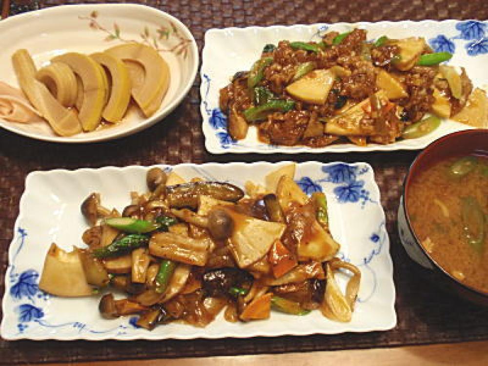 ![]() お好みの野菜を炒めたら、そこに水を少し加え、上の材料を全て合わせたタレをまわしかければ完成です。