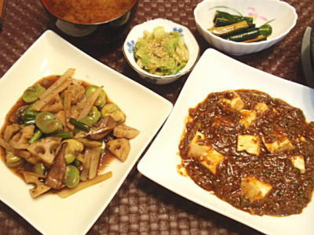 同じフライパンにサラダ油をしき、材料-Aを炒め、香りが出てきたら、豆板醤と1のひき肉を戻してサッと炒めて、
