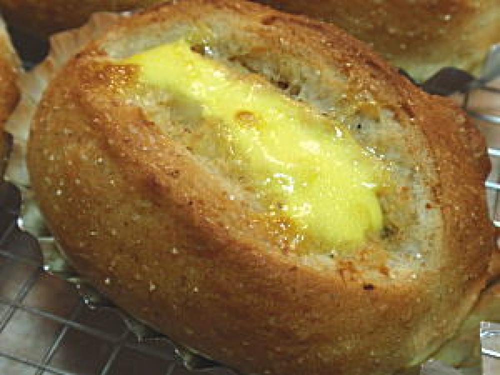 ☆全てを合わせて塩・胡椒で味を調え、一次醗酵後の生地で包んだら、ナイフで切り込みを入れて、切り口にマヨネーズを塗ります。