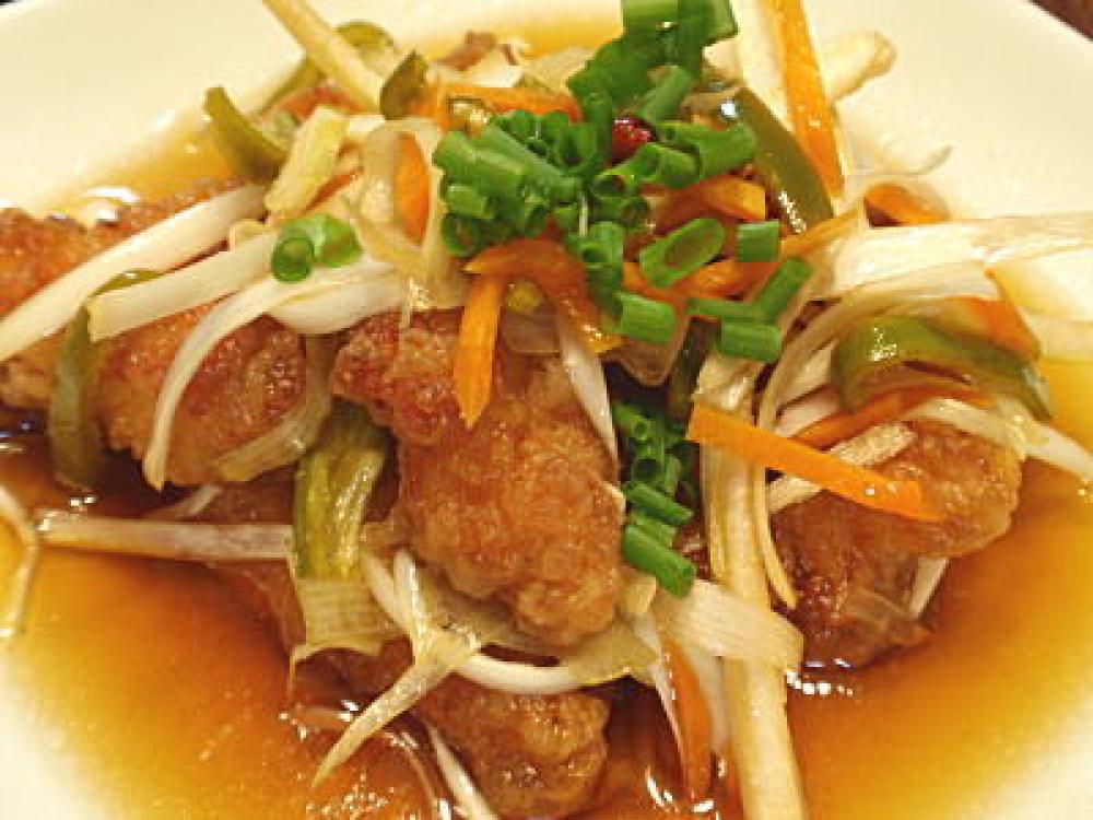 ![]() 4の鶏肉を油で揚げ、3の漬け込みダレに揚げたてを投入すれば完成です。