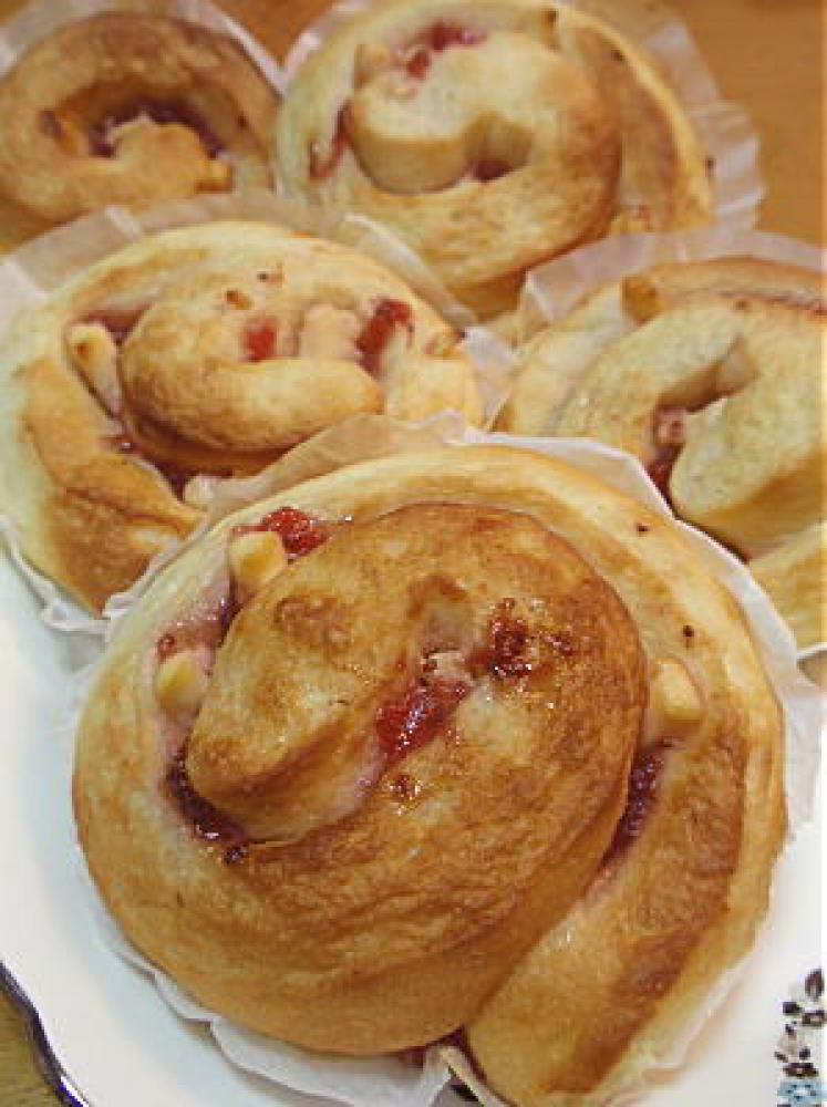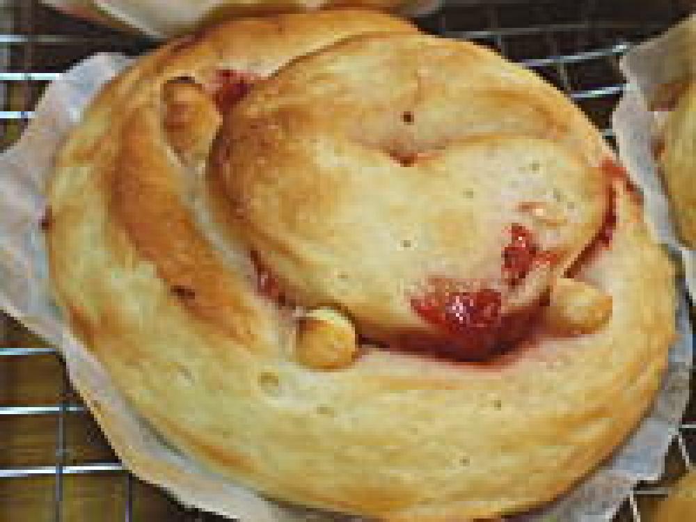 生地を1センチ厚くらいに四角く伸ばしたら、バター(分量外)を薄く塗り、その上からイチゴジャムをお好み量塗ります。