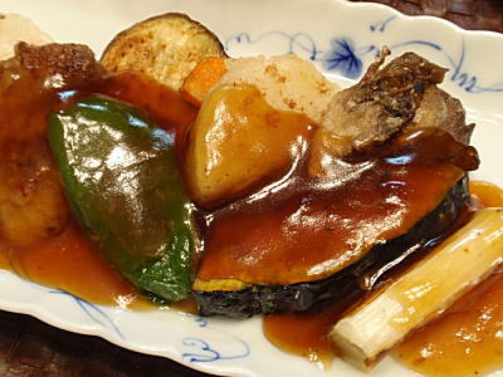 ![]() 鍋またはフライパンに調味料を全て加えて火を通し、温まったら水溶き片栗粉を加えてとろみをつけ、揚げた野菜にかければ完成です