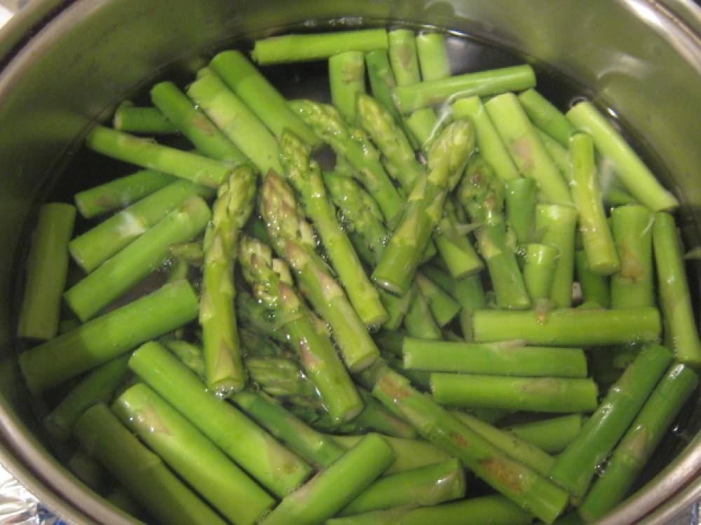 ![]() アスパラガスを洗って、食べやすい大きさに切る