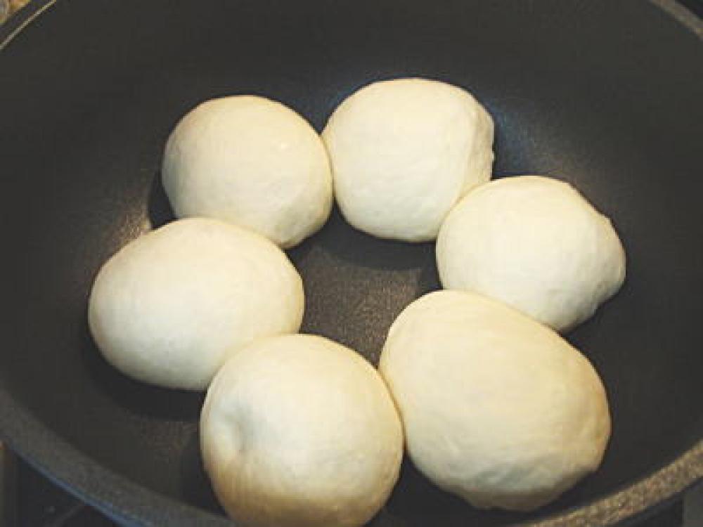 ![]() 3で成形した生地を鍋またはフライパンに並べ、フタをして10~20分ほど放置。