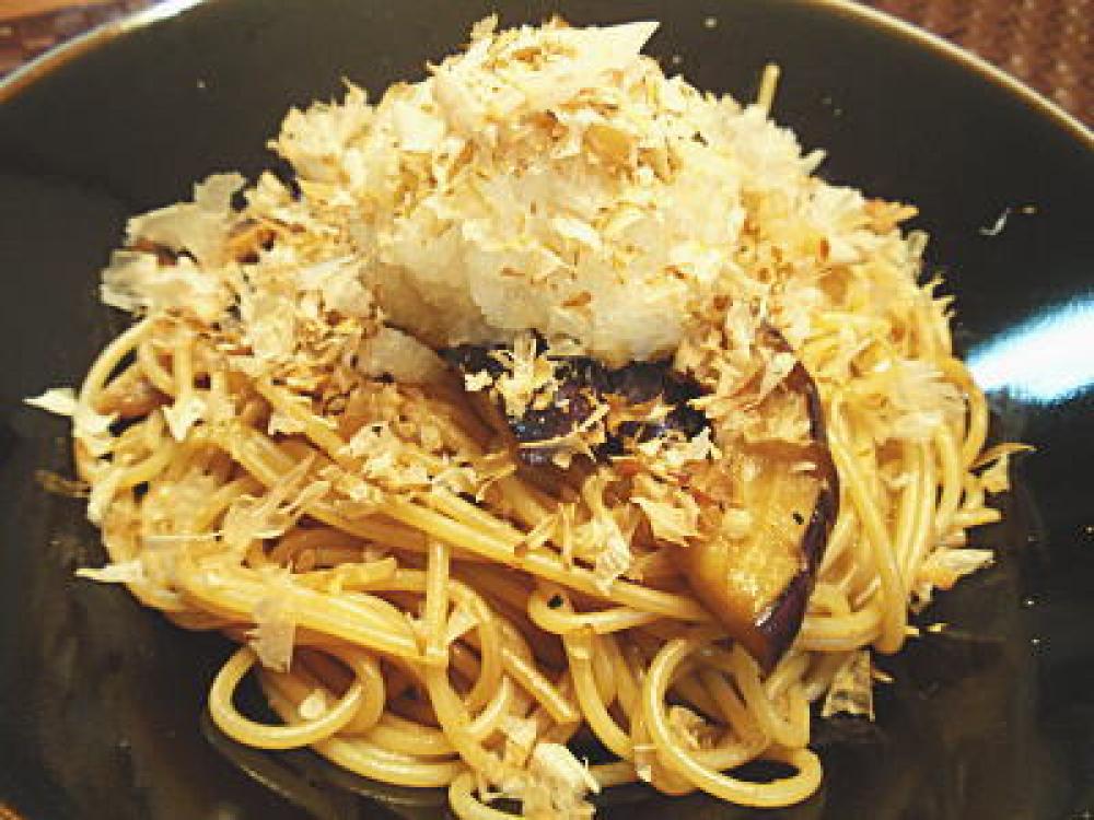 パスタを加えてひと混ぜしたら器に盛り、大根おろしと鰹節をかければ完成です。