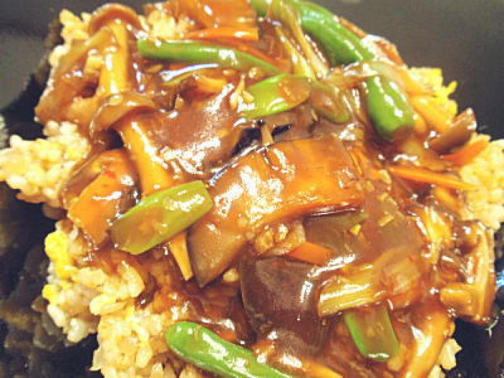 ![]() 先に作っておいたチャーハンに3のあんをかければ完成です。