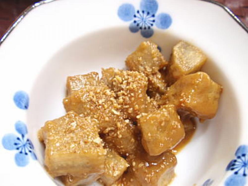 ボウルに材料-Aを入れてよく混ぜ合わせたら、茹でたゴボウを加えて全体によく和えます。