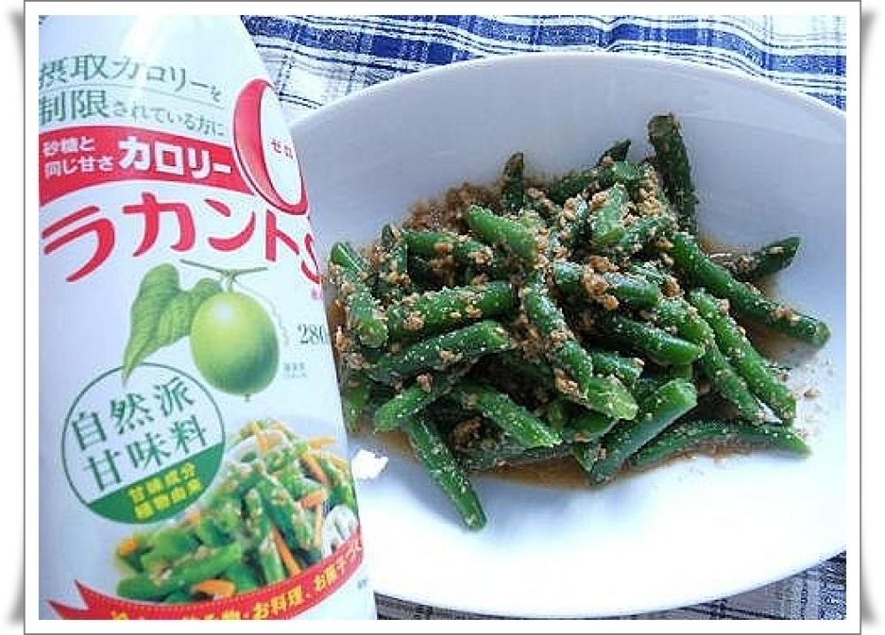 白胡麻をすって、出し、ラカントS液状、しょうゆを加え、味を調節する。