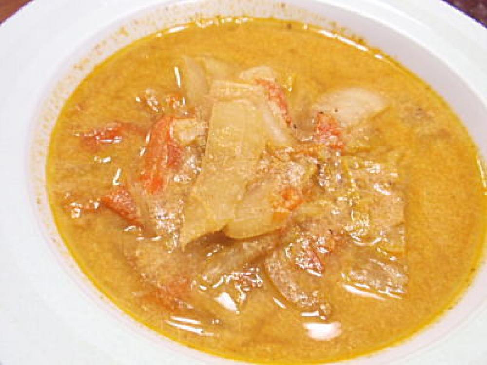 白菜が柔らかく煮えたら、牛乳を加えてひと混ぜし、フタをして火を止め、予熱で調理します。