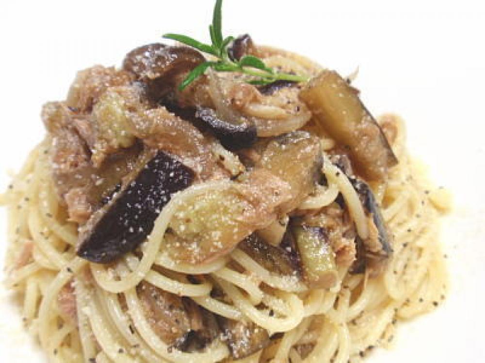 長さ3~5センチで5ミリ角棒状にカットした茄子と、スライスした玉ねぎ、