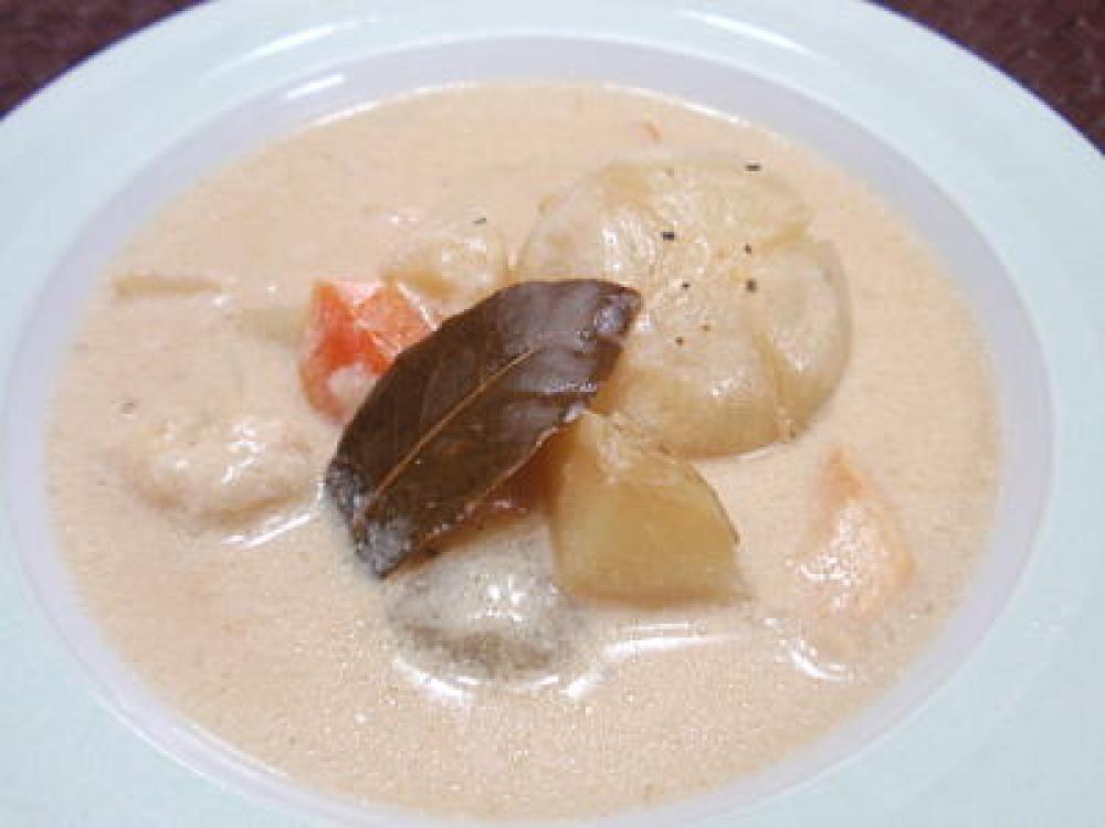 バター・牛乳・水溶き小麦粉を加えてよく混ぜ合わせたら、フタをして再び煮込みます。